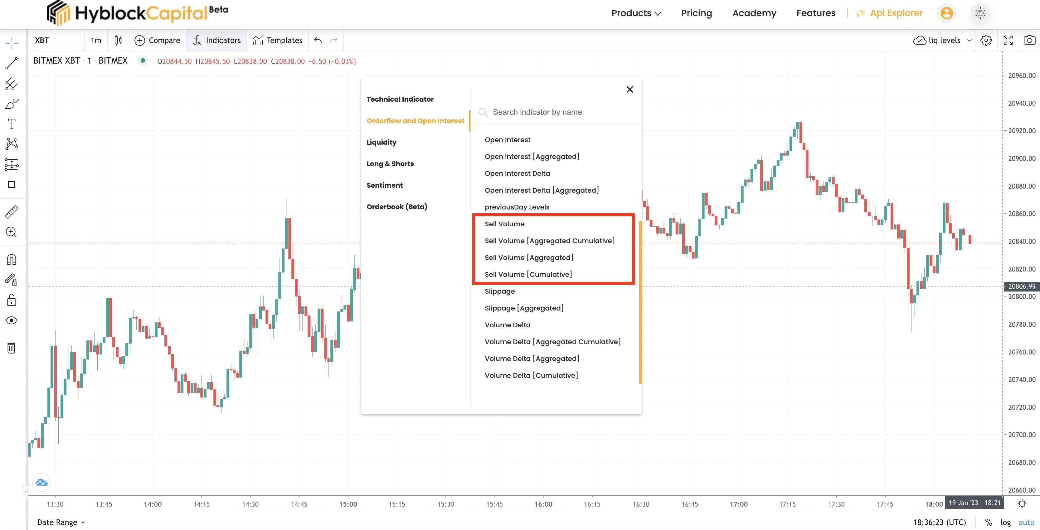 You can access the Sell Volume indicator on the Main Chart product under the Orderflow & Open Interest indicators. There are four variations of this indicator: