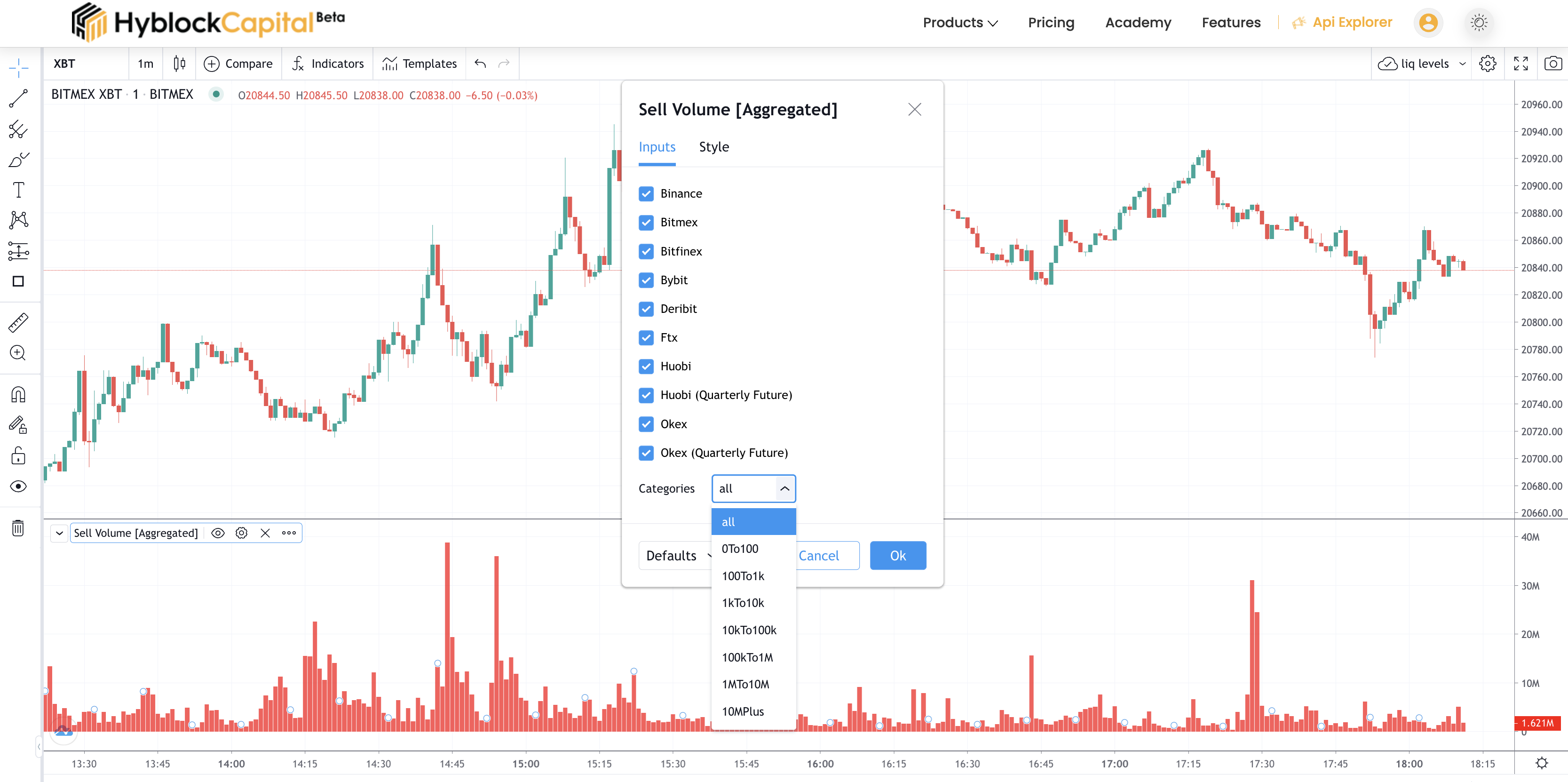 * Sell Volume: Calculated at each candlestick and for a single selected exchange