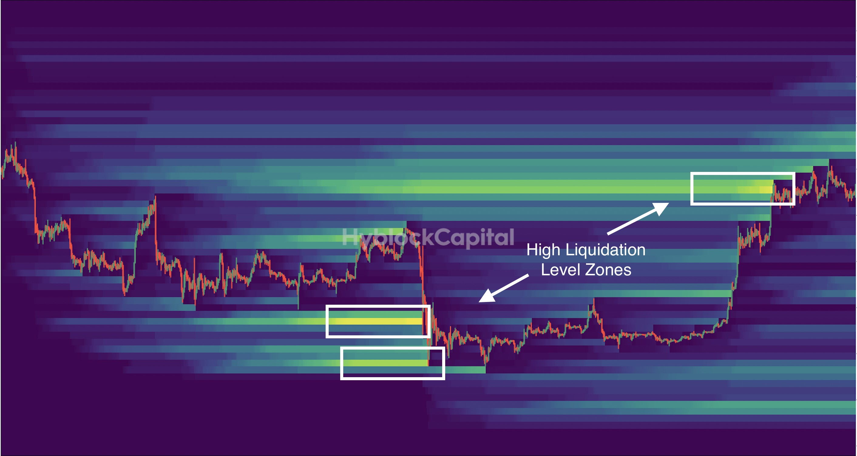 Traders who can estimate the locations of other traders' liquidation levels may gain an advantage similar to knowing high liquidity in the order book. The Liquidation Heatmap by Hyblock attempts to predict where large liquidations may occur to assist traders.
